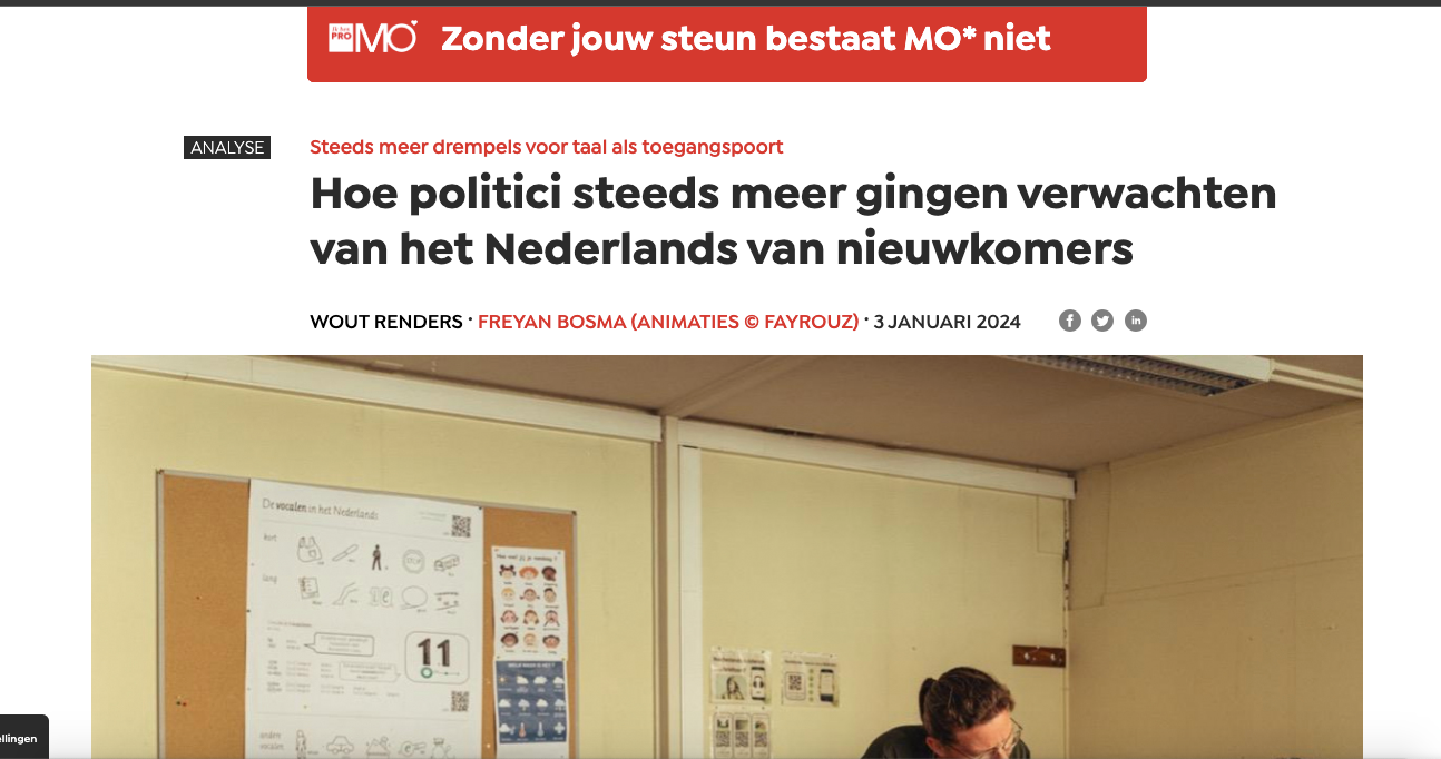 een profiel van de Vlaamse politicus Bart De Wever. Voor het Belgische tijdschrift MO* analyseerde hij taalonderwijs voor nieuwkomers. Ook maakt hij radio bij de Gentse omroep Urgent.fm.